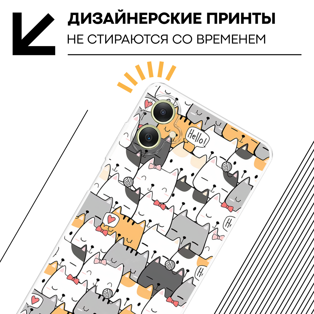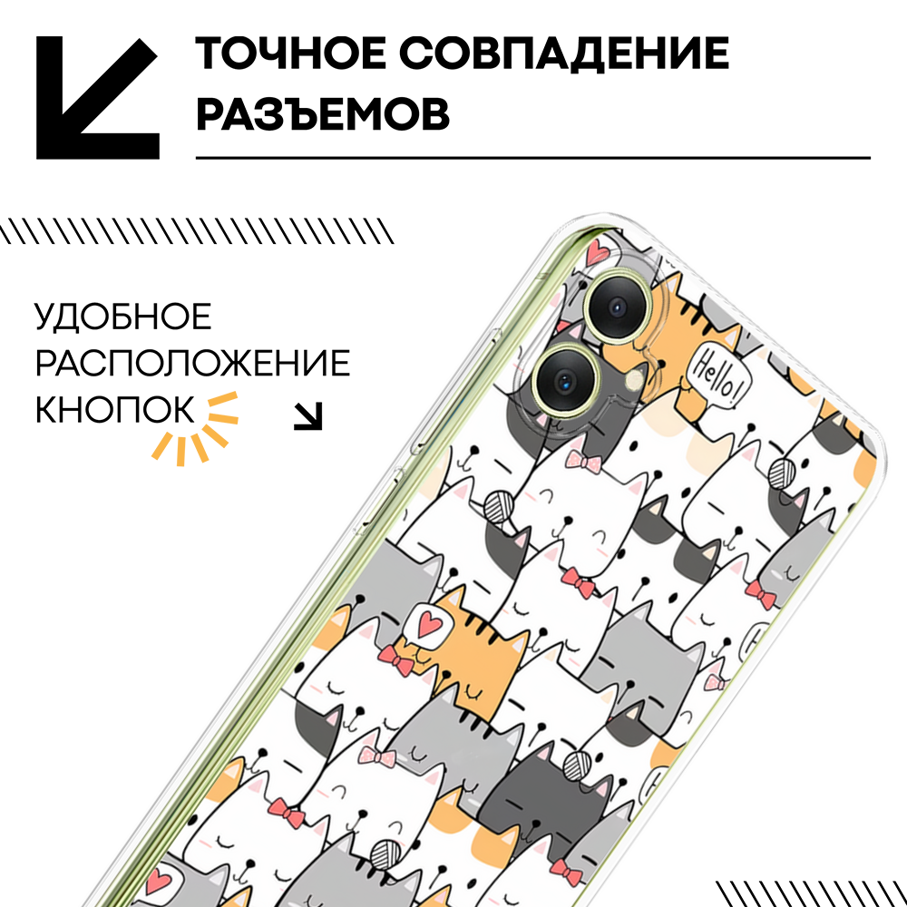 Чехол на Samsung Galaxy A06 / Самсунг Галакси А06 с принтом Домашние коты, прозрачный 479 ₽