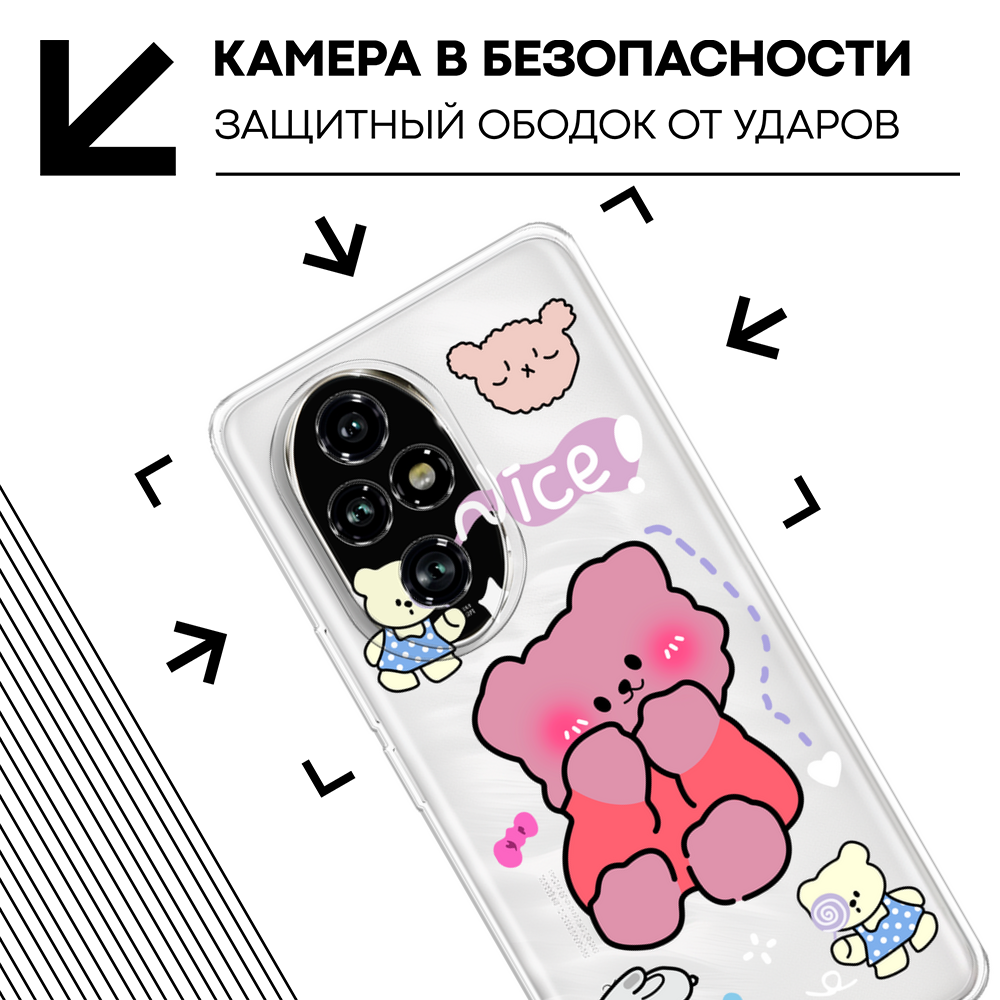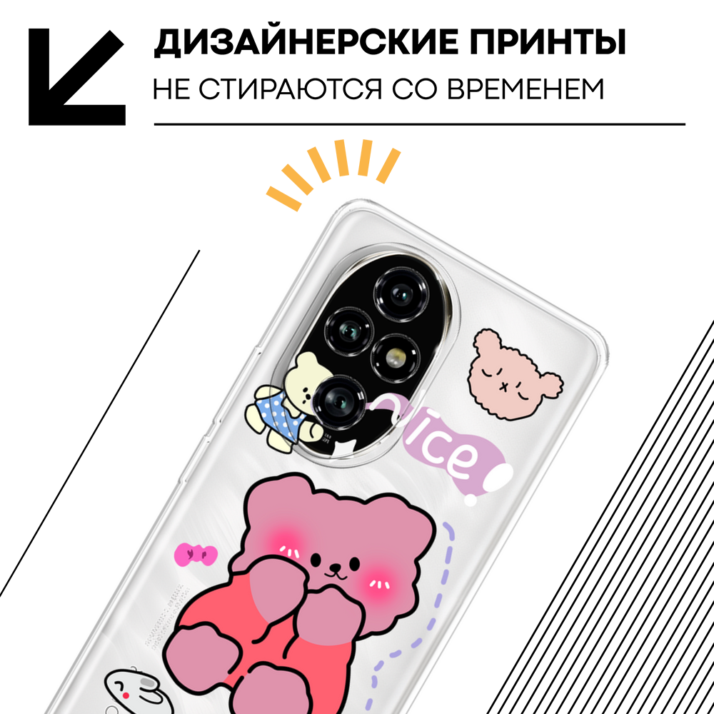 Чехол на Honor 200 Pro / Хонор 200 Про с принтом Медведь половинка, прозрачный 479 ₽
