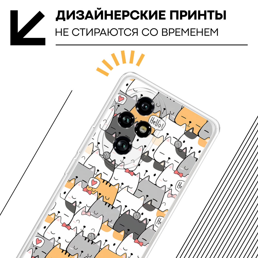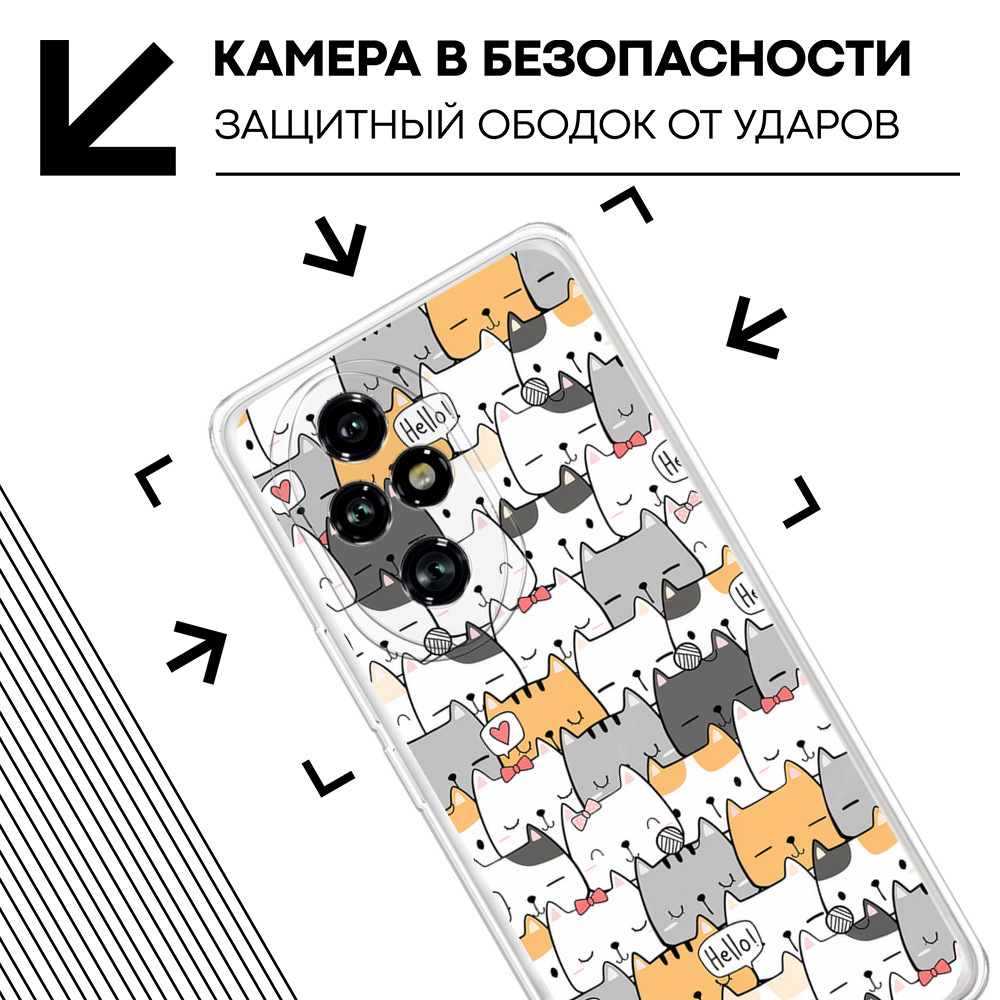 Чехол на Honor 200 Pro / Хонор 200 Про с принтом Смешные коты, прозрачный 479 ₽