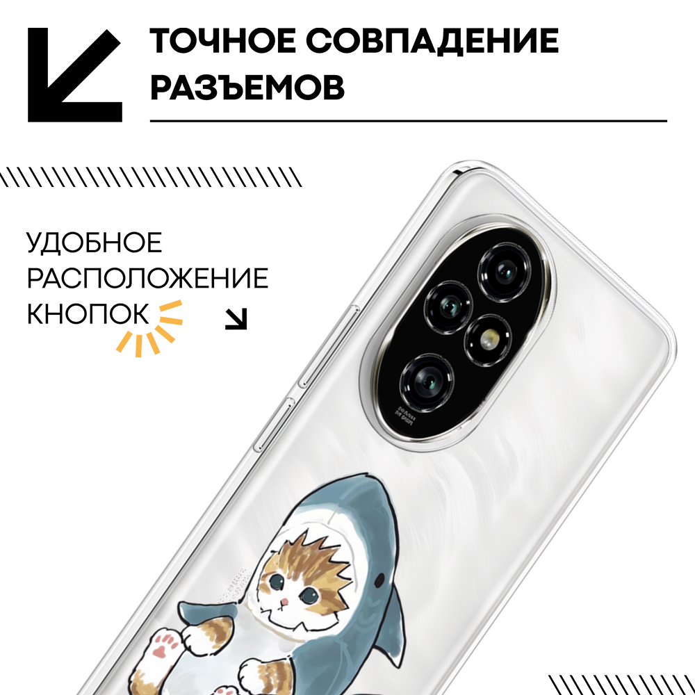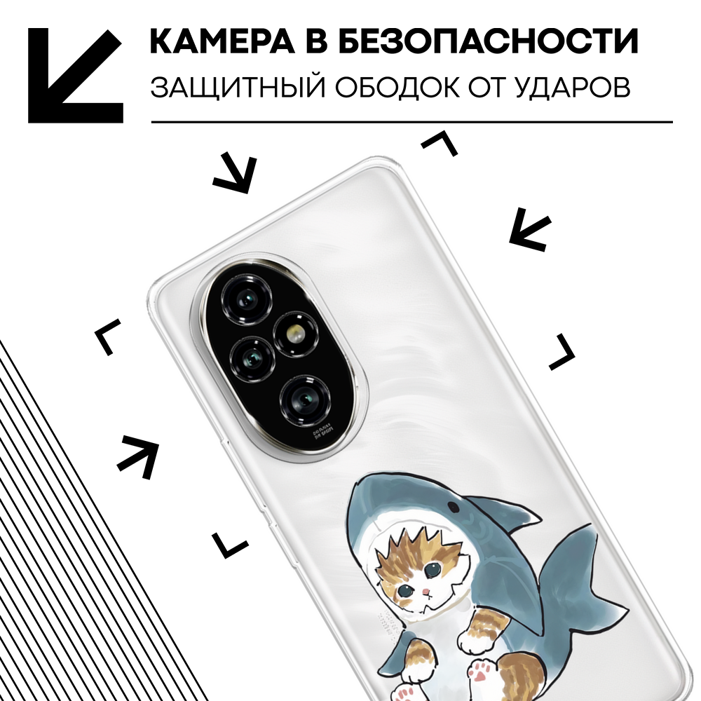 10 цен на Чехол на Honor 200 Pro / Хонор 200 Про с принтом Кошачий плавник, прозрачный