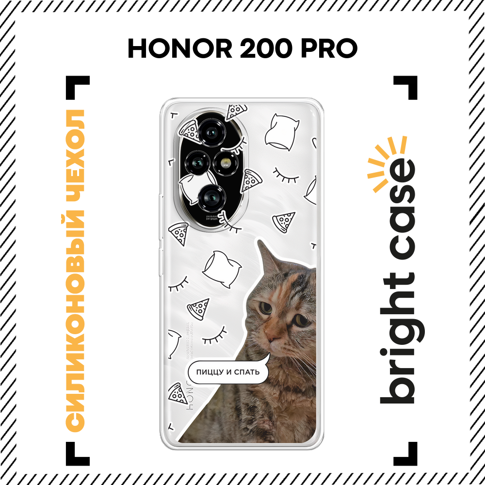 Чехол на Honor 200 Pro / Хонор 200 Про с принтом Кот на кровати 479 ₽