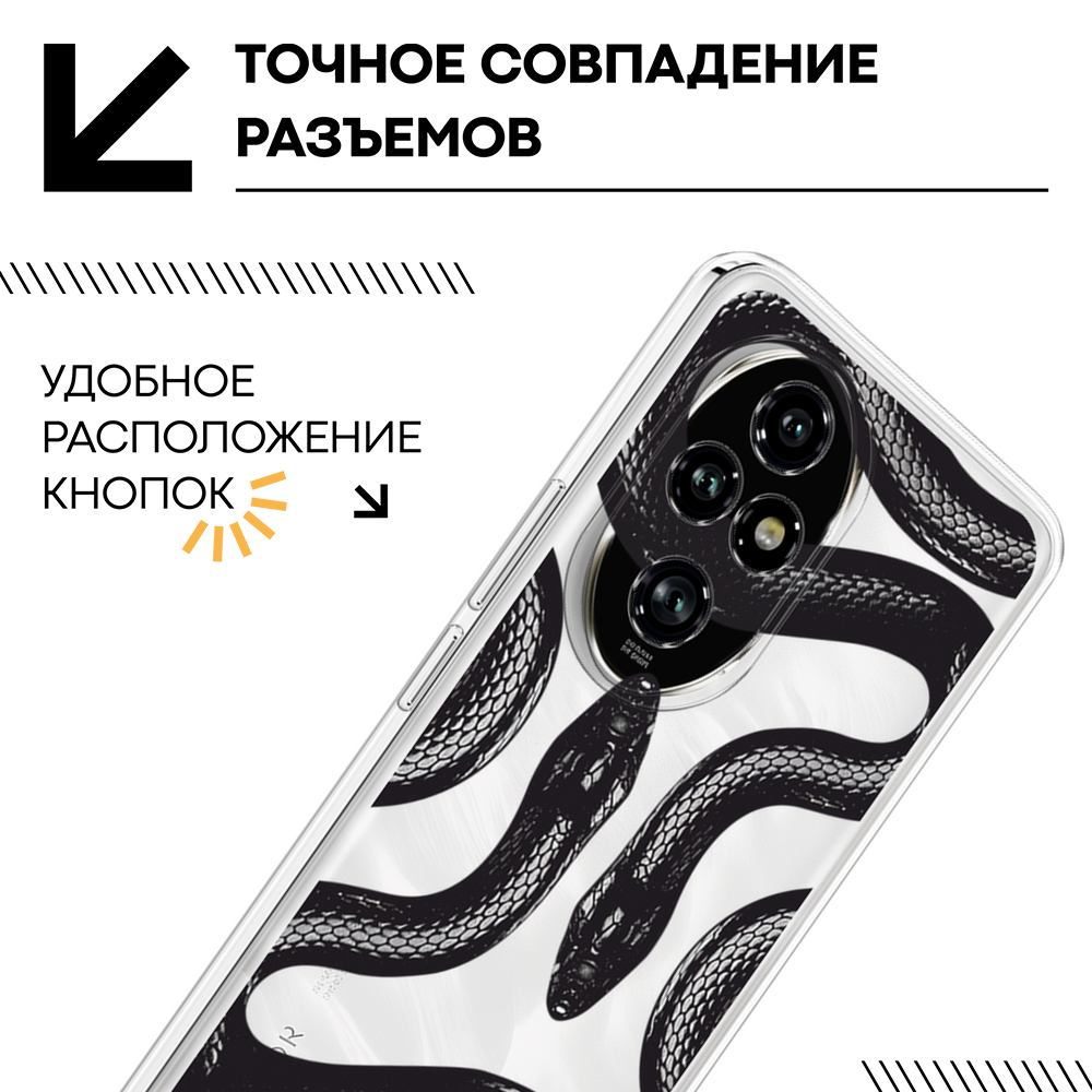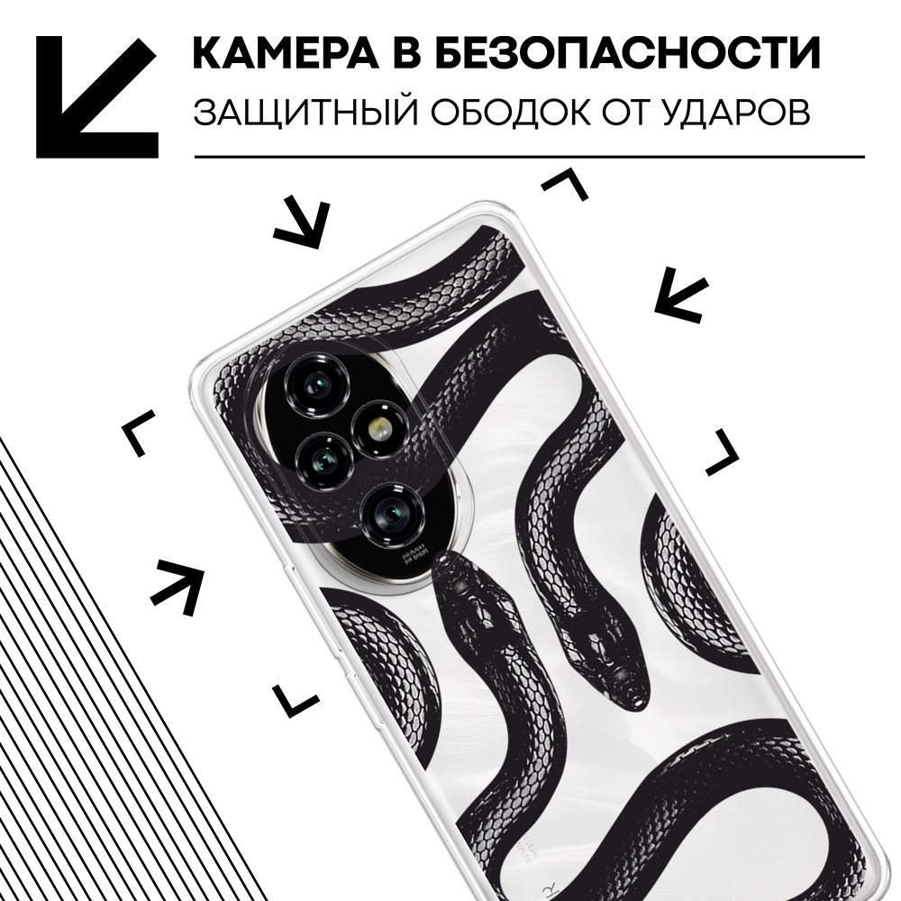 Чехол на Honor 200 Pro / Хонор 200 Про с принтом Черные змеи, прозрачный информация: