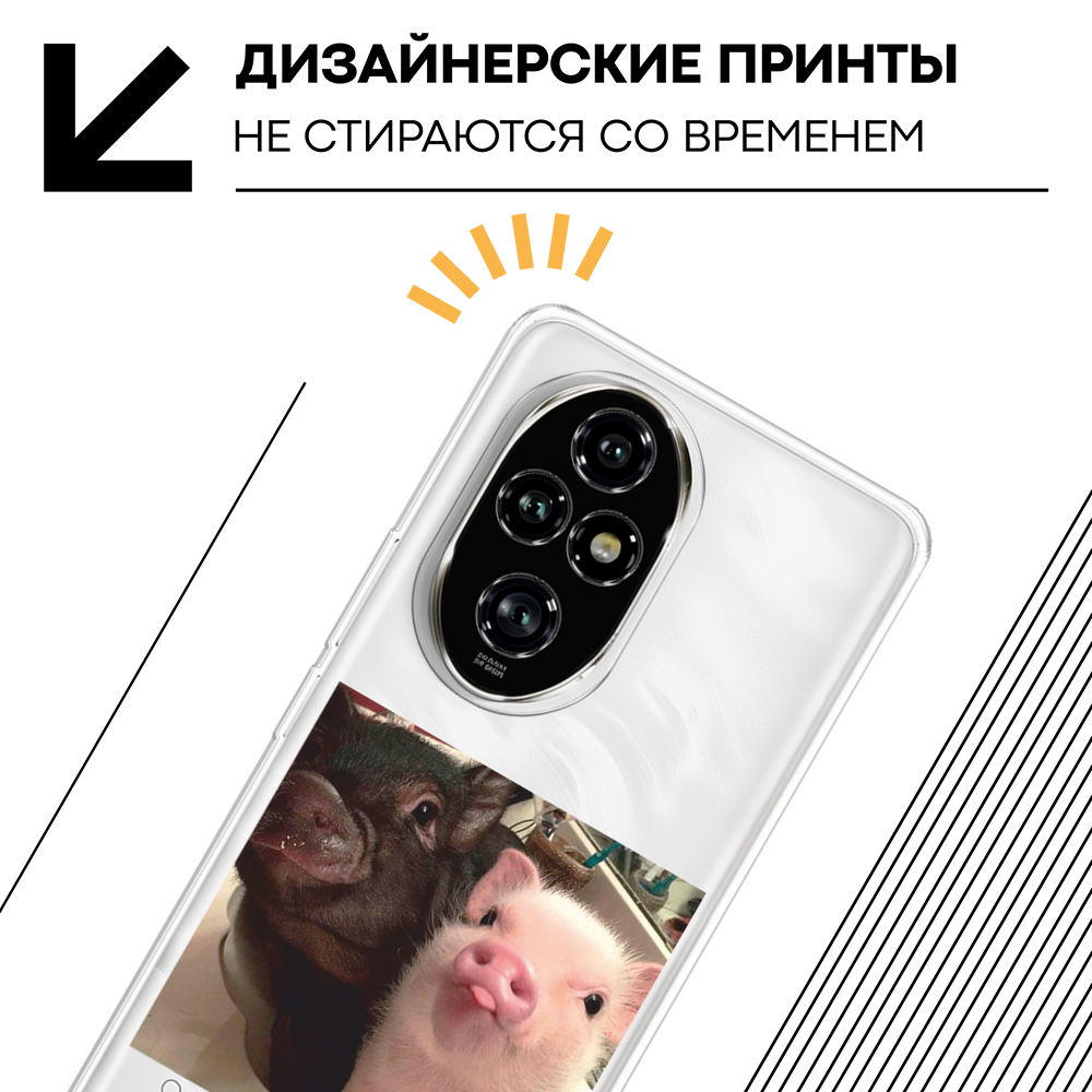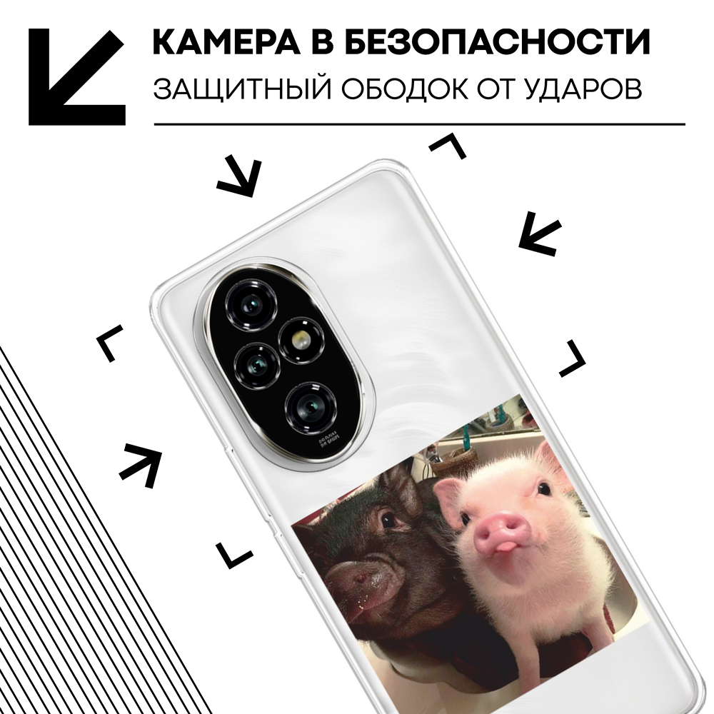 10 цен на Чехол на Honor 200 Pro / Хонор 200 Про с принтом Два поросенка, прозрачный