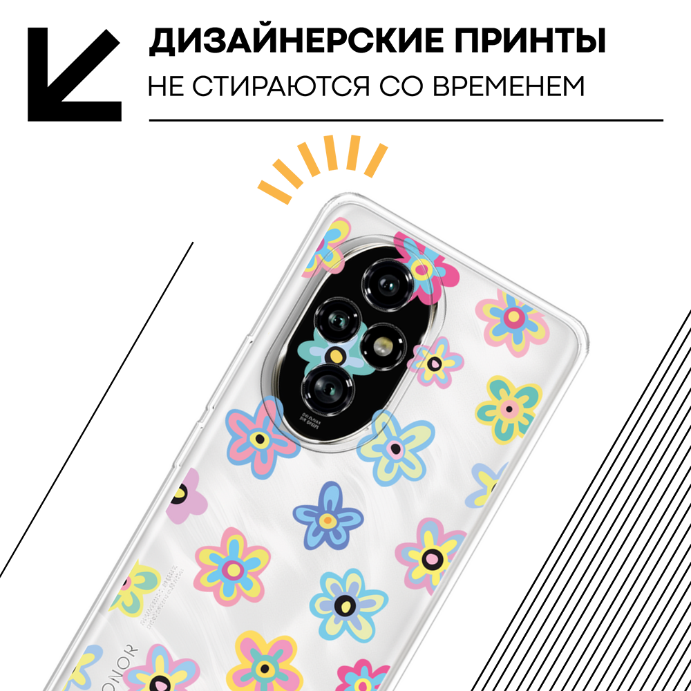 10 цен на Чехол на Honor 200 Pro / Хонор 200 Про с принтом Летние цветочки, прозрачный