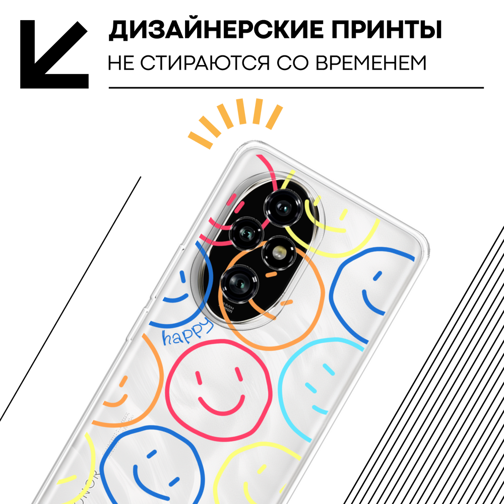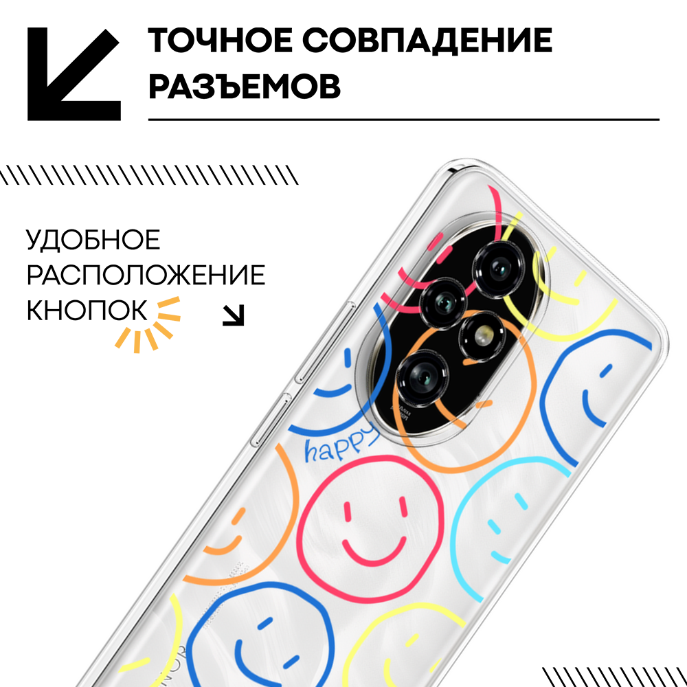 Чехол на Honor 200 Pro / Хонор 200 Про с принтом Смайлы, прозрачный информация: