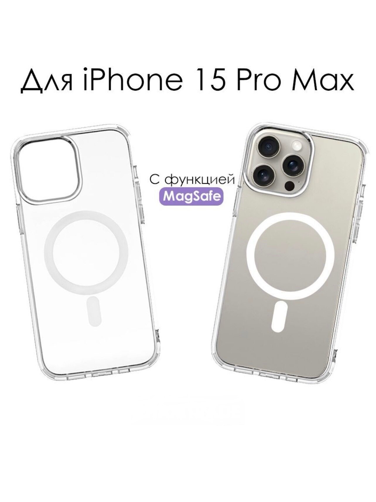Защитный чехол для iPhone 15 Pro Max прозрачный с MagSafe информация: