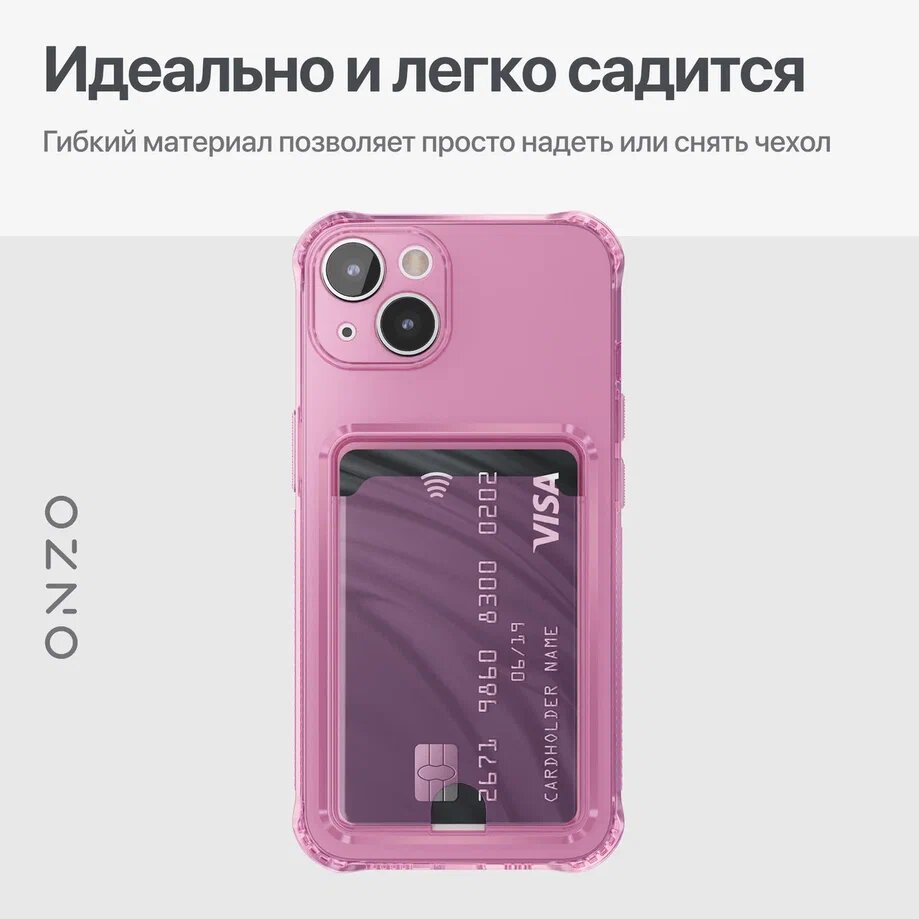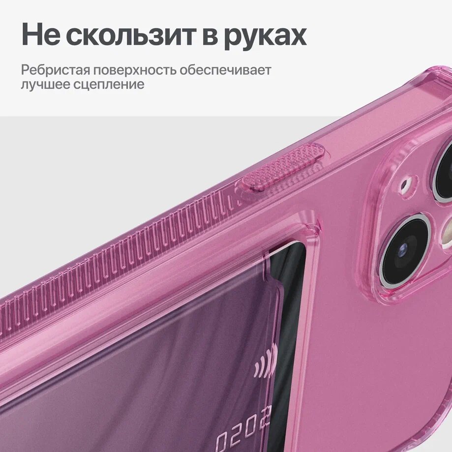 Чехол на Айфон 13 противоударный с картхолдером / Бампер для iPhone 13 прозрачный розовый информация: