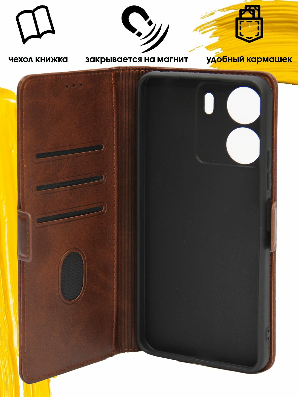 Чехол книжка для Xiaomi Redmi 13C & Poco C65 / чехол на сяоми редми 13с и поко с65 с боковым магнитом коричневый информация: