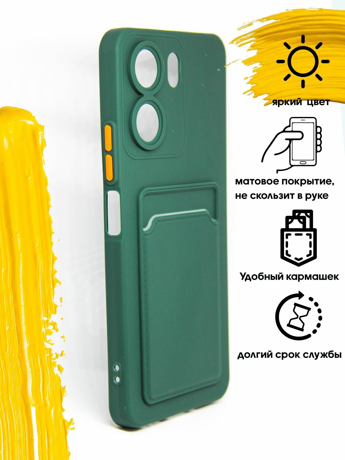 Чехол для карты на Xiaomi Redmi 13C 4G & Poco C65 / чехол на сяоми редми 13с 4G и поко с65 зеленый информация: