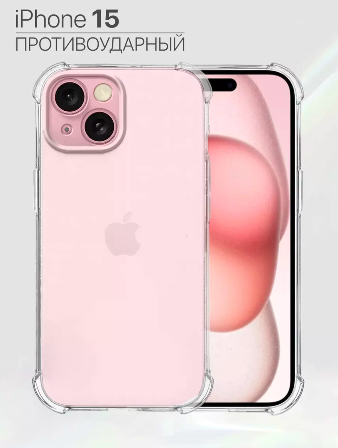 10 цен на Защитный чехол на iPhone 15 противоударный / прозрачный / с защитой камеры / силиконовый / тонкий / для айфон 15