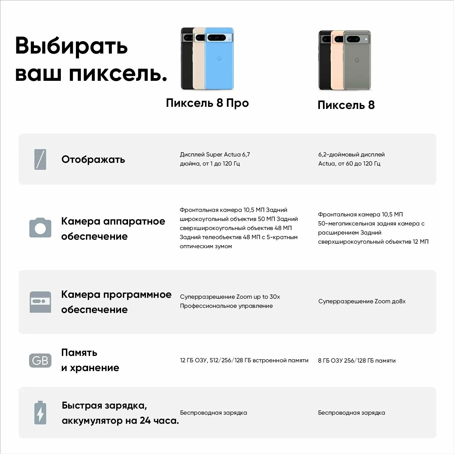 Смартфон Google Pixel 8 8/128 ГБ Global (не для японской версии) nano SIM + eSIM черное информация: