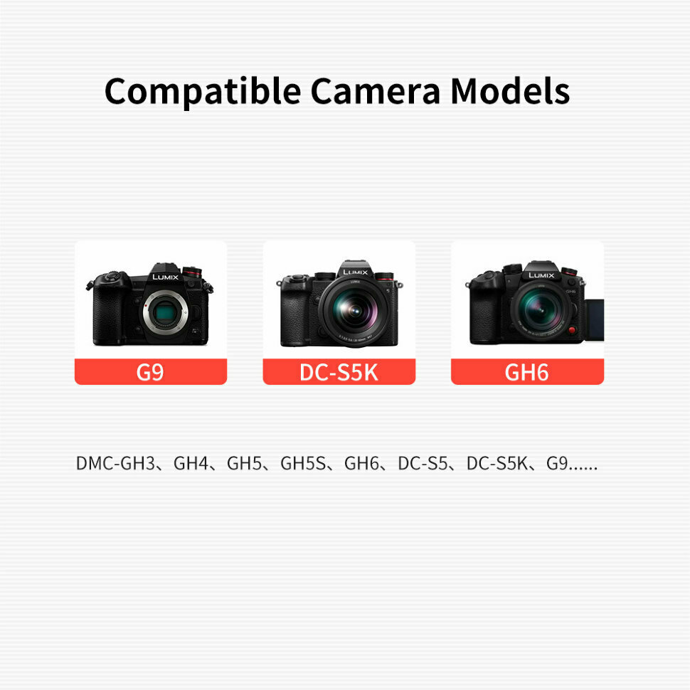 | Совместимость | Panasonic DMC-GH3, GH4, GH5, GH5S, GH6, DC-S5, DC-S5K, G9 |