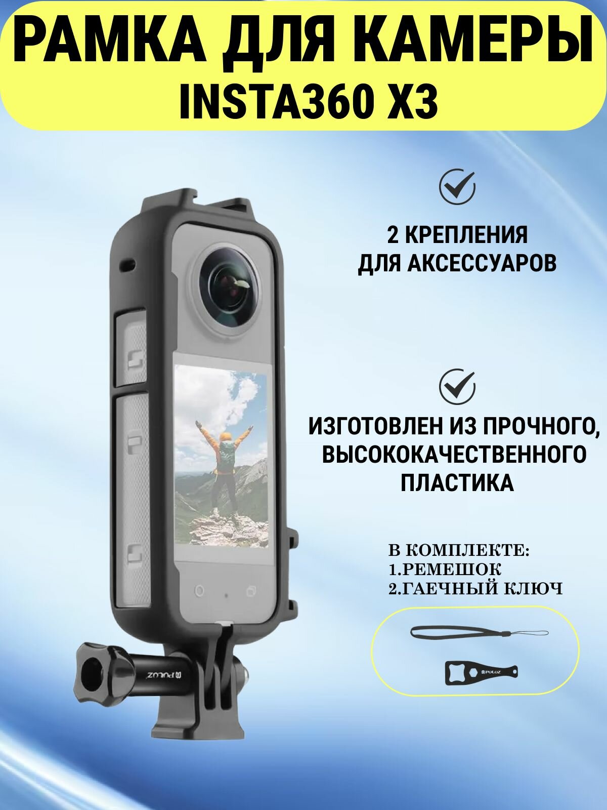 10 цен на Рамка для камеры Insta360 X3 с креплением Холодный башмак, и винтом + ключ (черный)