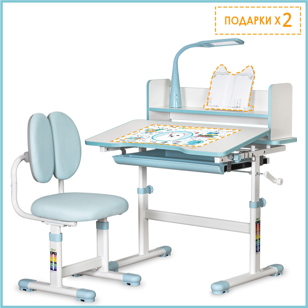 10 цен на Растущая детская парта стол с лампой (длина столешницы 80 см) и стул (мягкое кресло) BD-24 BL