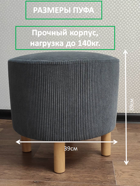Пуфик в прихожую/круглый . Графит, велюр. информация: