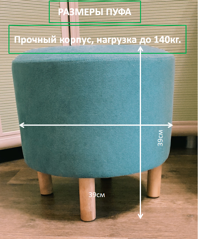 Пуфик круглый для прихожей, спальни, зала, детской. Бирюзовый информация: