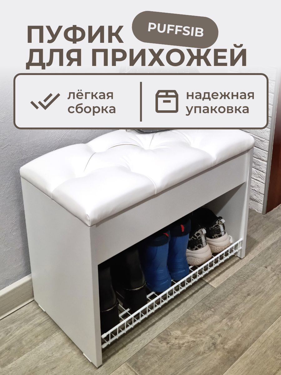 Пуфик в прихожую с обувницей Puffsib А-61, белый информация: