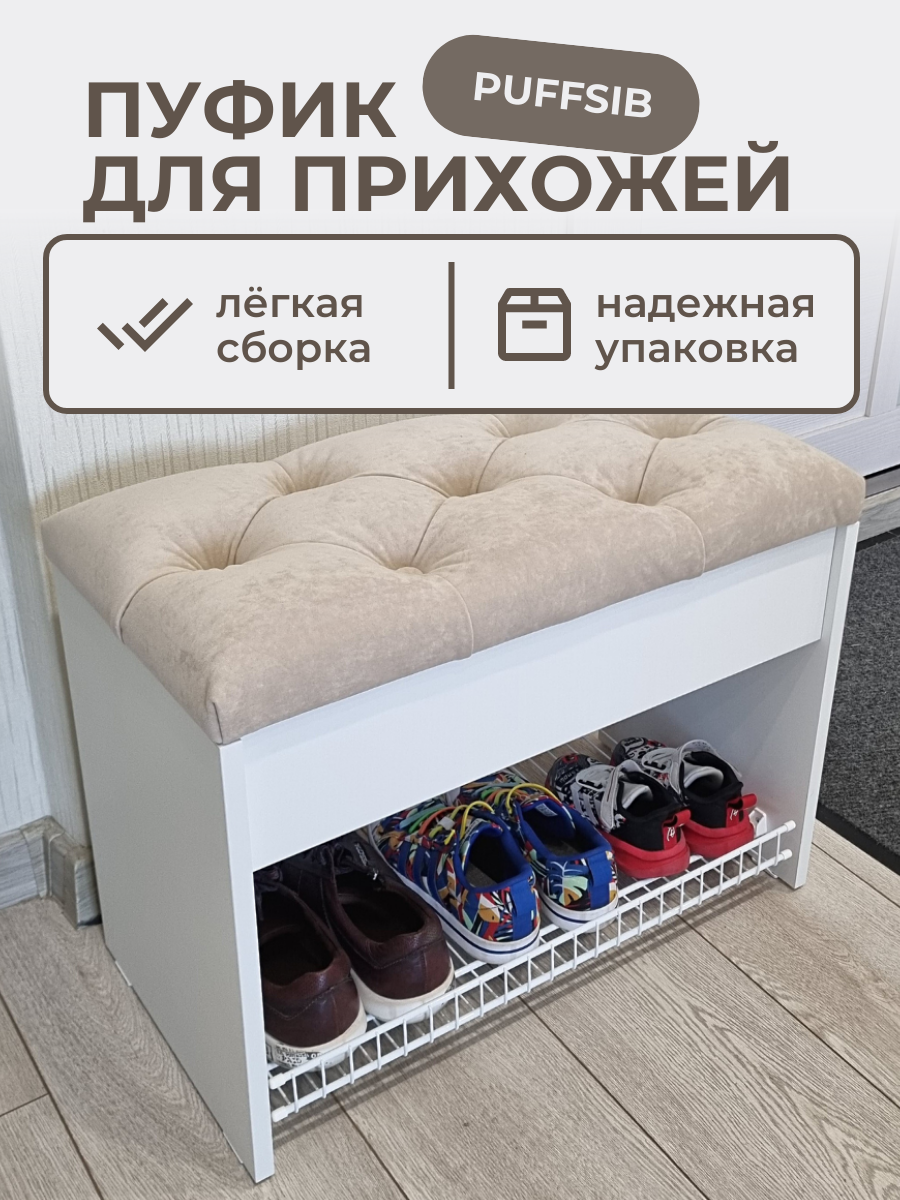 10 цен на Пуфик в прихожую с обувницей Puffsib А-61, белый/бежевый