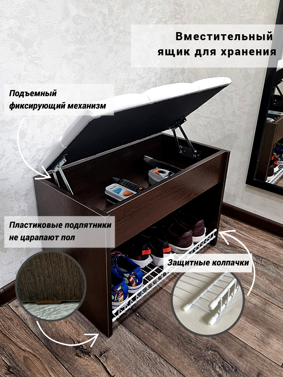 Пуфик в прихожую с обувницей Puffsib А-61, венге/белый информация: