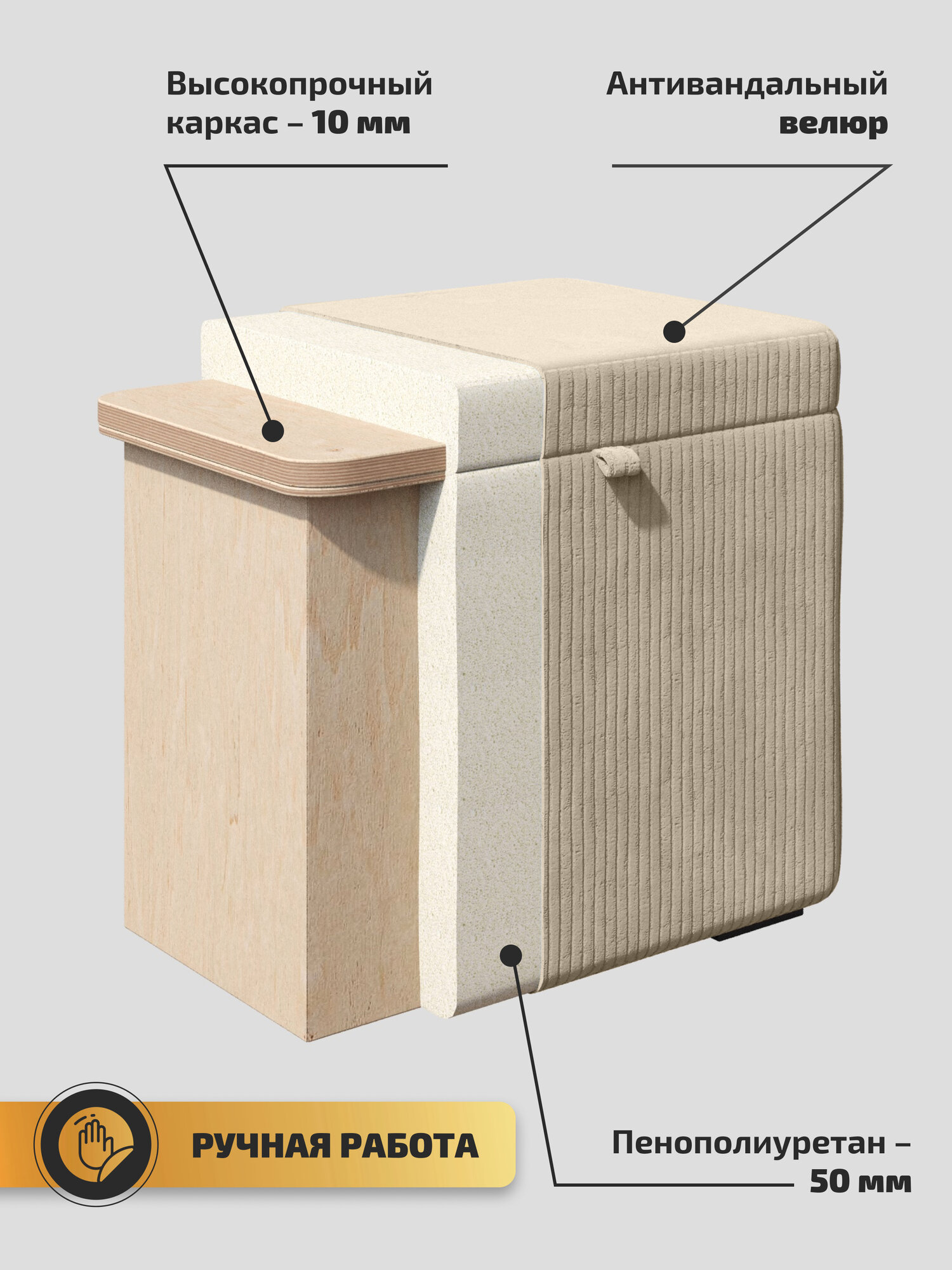 Пуфик в прихожую с ящиком для хранения, рубчик, бежевый, Studioаkd информация: