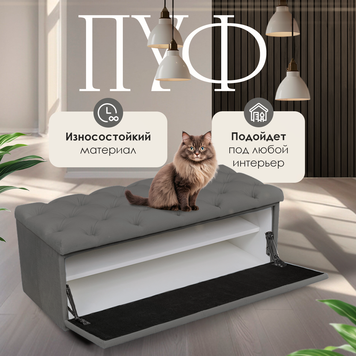 Обувница для прихожей с сиденьем закрытая / Пуф мягкий велюр / Банкетка в прихожую Серый 89.5*38.5*38 информация: