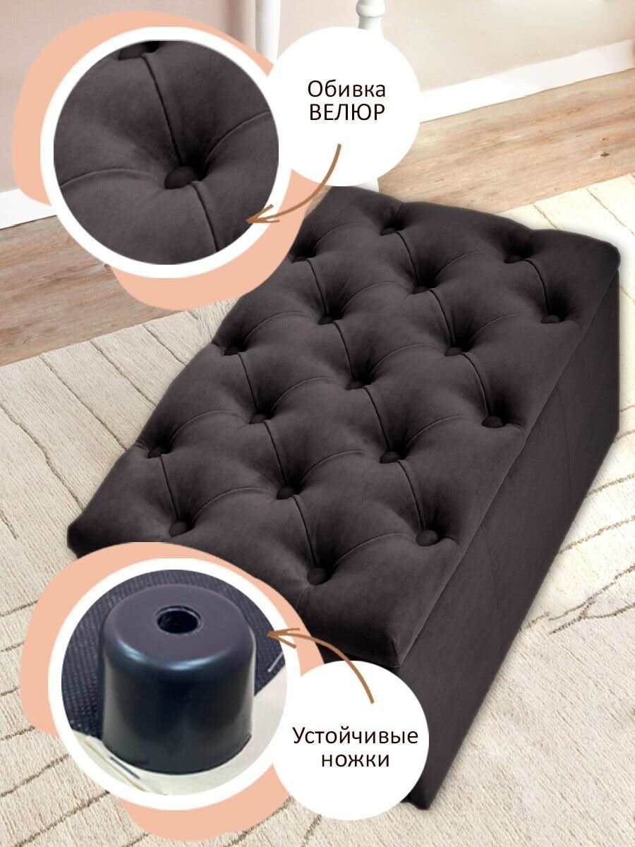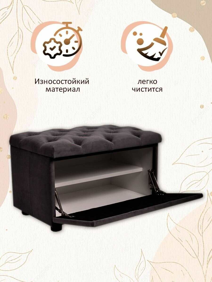 Отзывы на Обувница для прихожей с сиденьем закрытая / Пуф мягкий велюр / Банкетка в прихожую Темно-серый /Графит 59.5*38.5*38