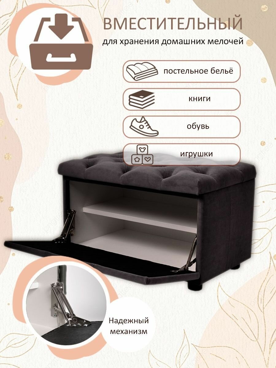 10 цен на Обувница для прихожей с сиденьем закрытая / Пуф мягкий велюр / Банкетка в прихожую Темно-серый /Графит 59.5*38.5*38