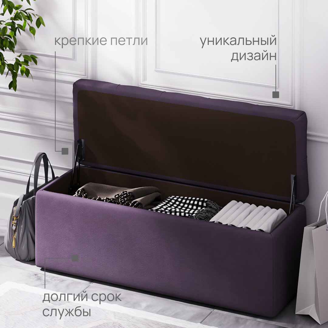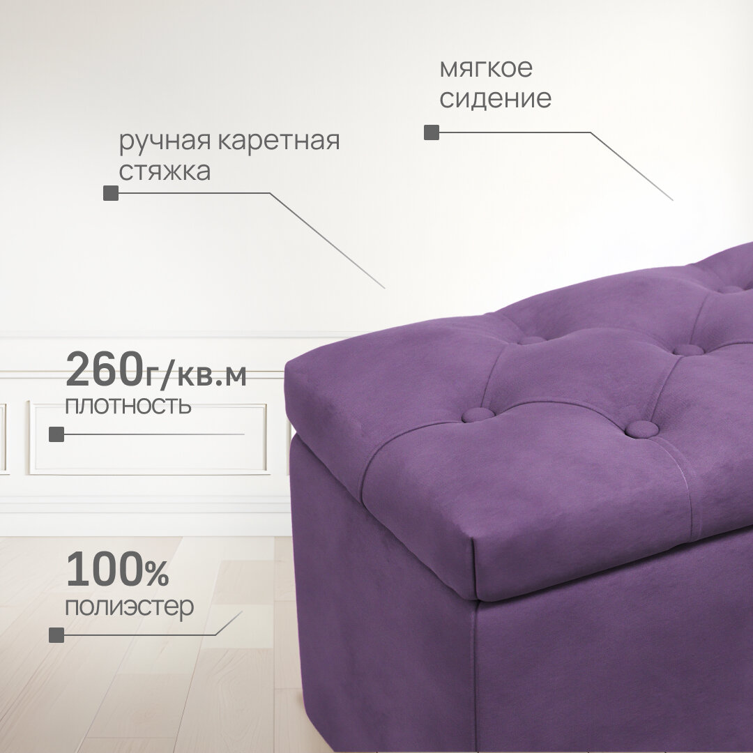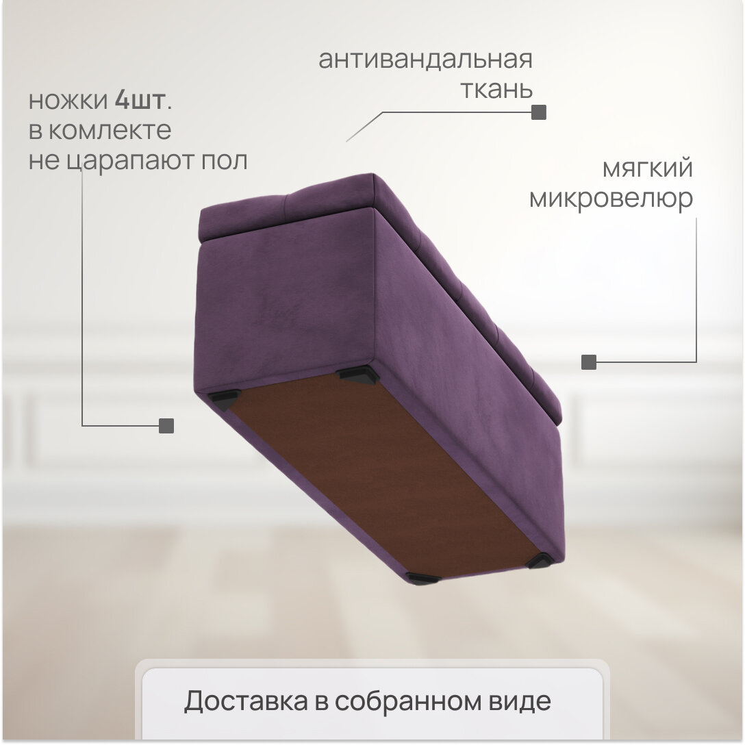 Банкетка пуф, с ящиком для хранения, с механизмом, открывной, "Мечта", фиолетовая, микровелюр, мягкий, квадратный, 100x35x40, в гостинную, в прихожую, в спальню, в коридор, подставка под ноги, к креслу информация: