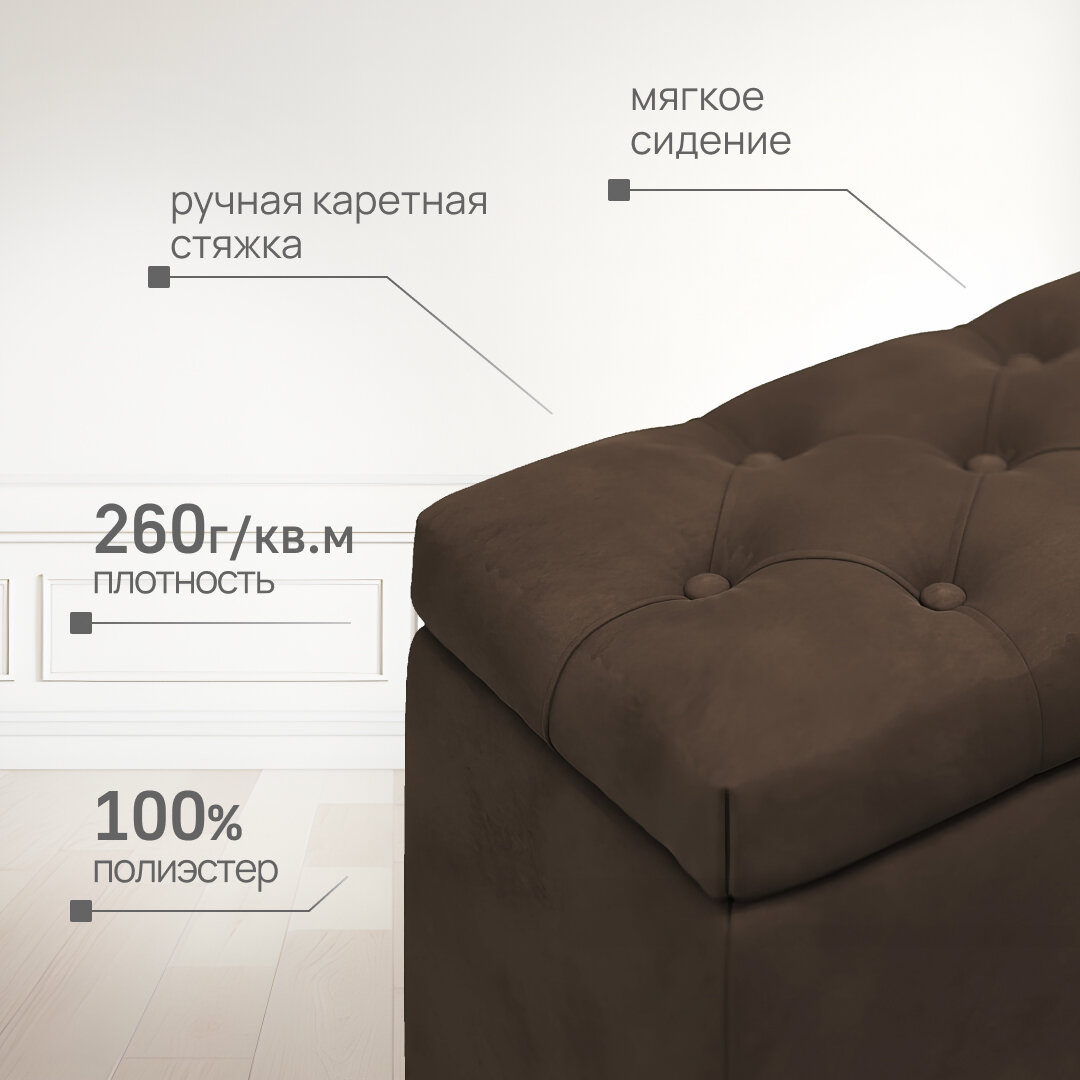 Банкетка пуф, с ящиком для хранения, с механизмом, открывной, "Мечта", коричневая, микровелюр, мягкий, квадратный, 100x35x4, в гостинную, в прихожую, в спальню, в коридор, подставка под ноги, к креслу 7 988 ₽