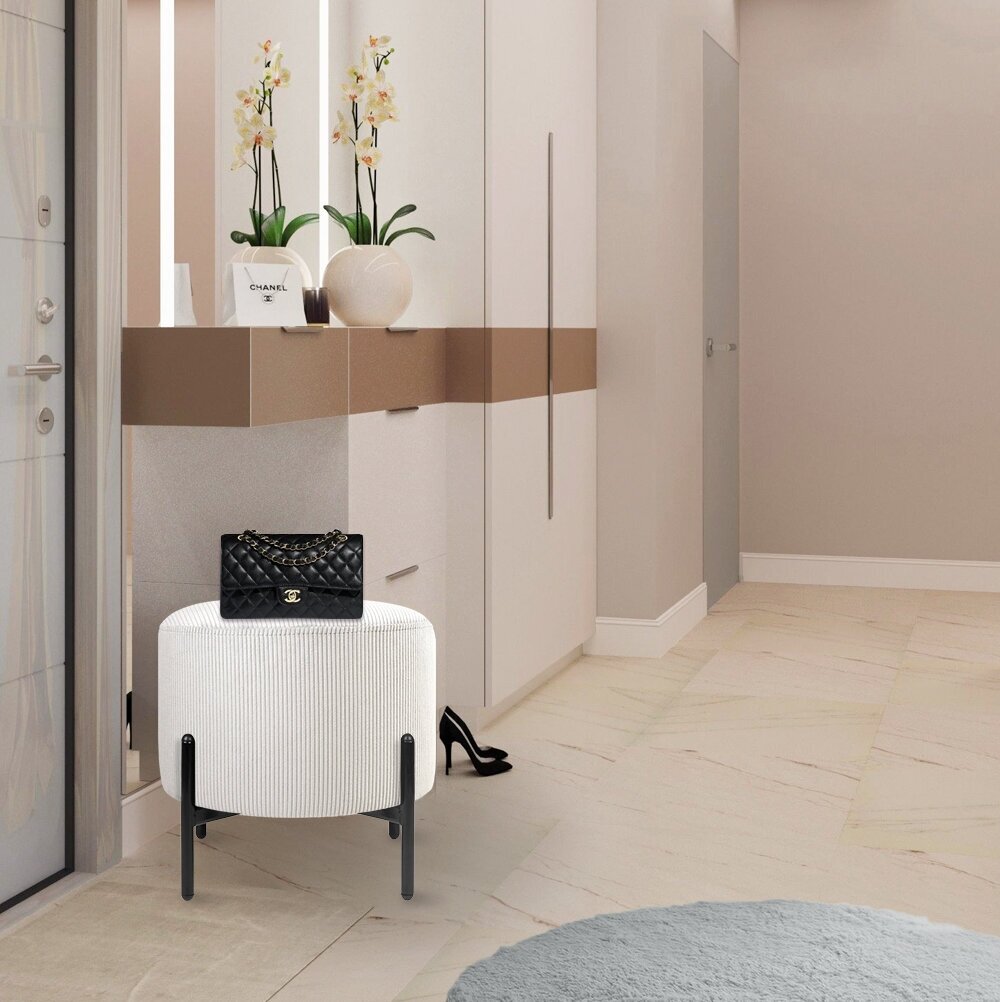 Круглый Пуф Пуфик из стеганого велюра для спальни, гостиной, прихожей, на кухню или балкон Молочный