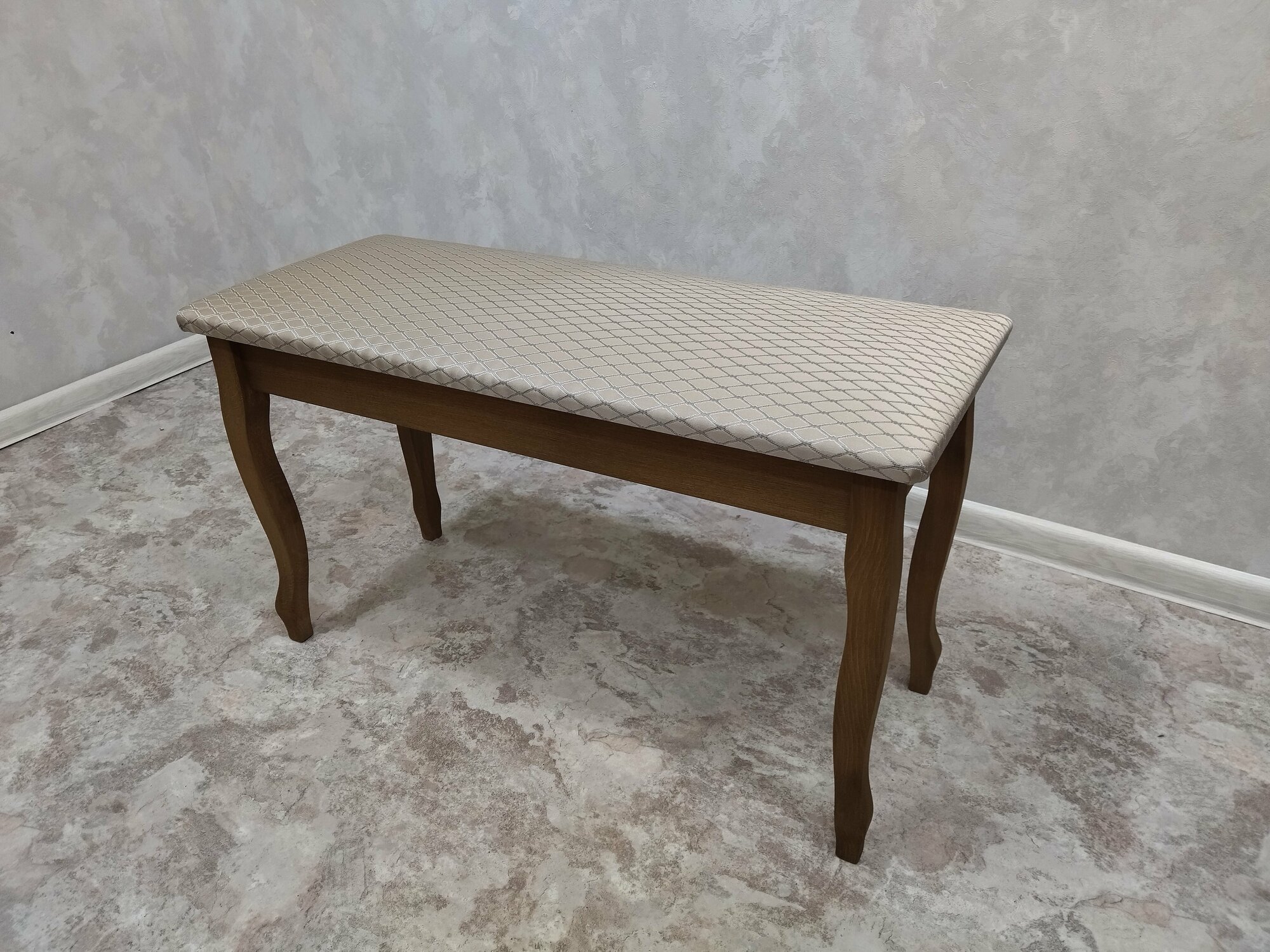 Банкетка тип А из массива бука, длина 80см, изогнут ножки и царги, цвет светлый орех, ткань светлый беж 4 900 ₽