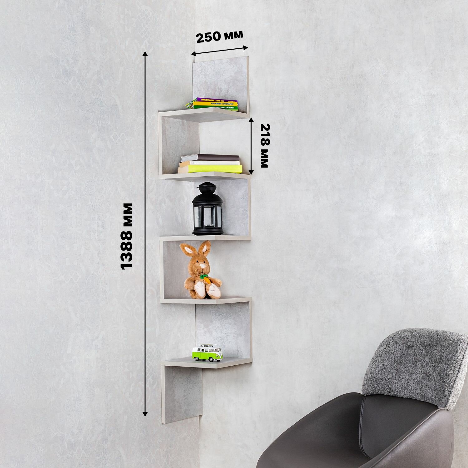 Угловая полка для книг и декора в стиле лофт, хай-тек и минимализм цвет цемент информация: