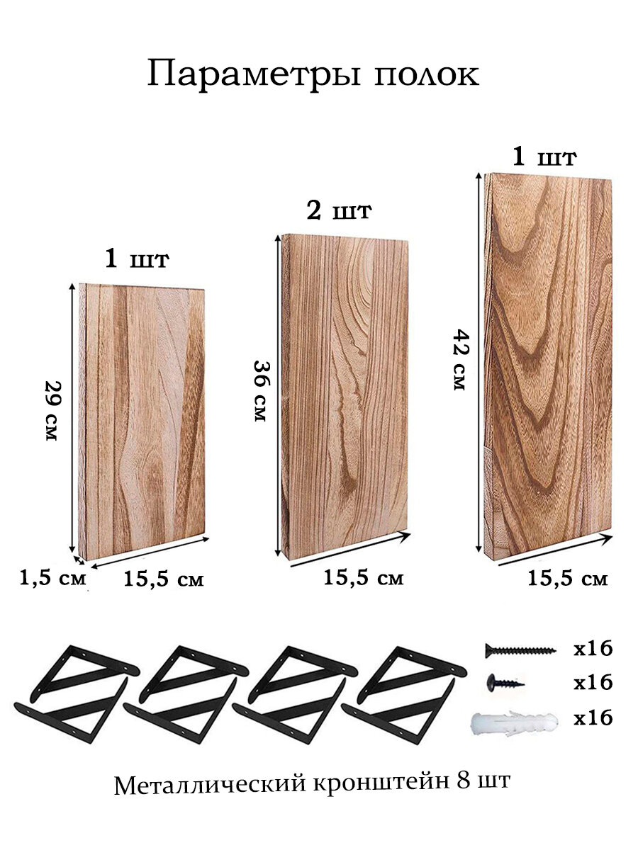 Полка настенная навесная парящая деревянная открытая комплект 4 штуки информация: