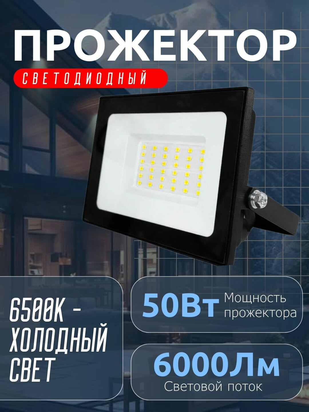 Прожектор LED 50W VLF8-50-6500-G 6500К 6000Лм 220V IP65 серый информация: