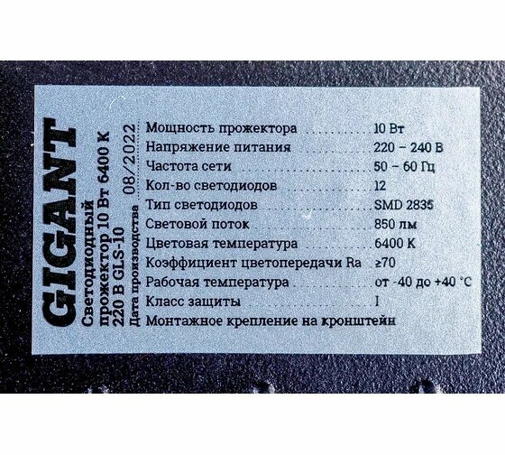 Gigant Светодиодный прожектор 10W 6400К 220V. GLS-10 информация: