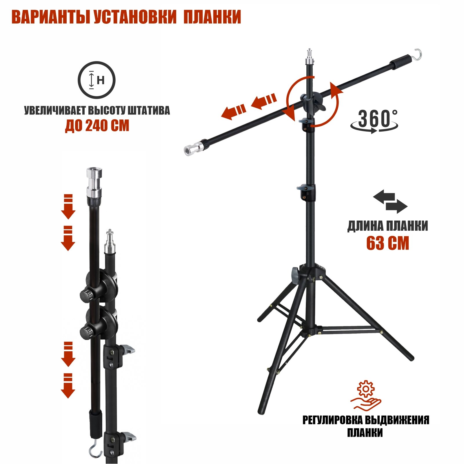 Прожектор светодиодный 150Вт на усиленном штативе LS240K-NP с возможностью наклона верхней секции информация: