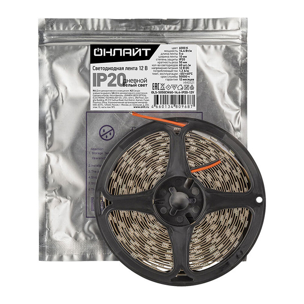 Светодиодная лента онлайт 80 968, 5 м, 12 В, IP20, холодный белый свет информация: