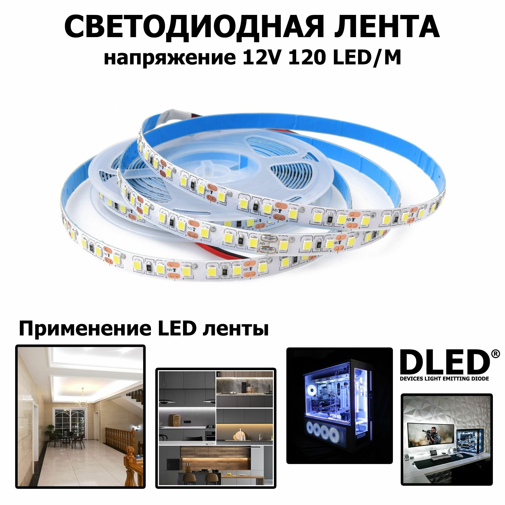 LED лента на SMD 2835 IP22 (120 LED) 12V DC 48W Холодный Белый 6500K 5 метров Бренд DLED 1 200 ₽