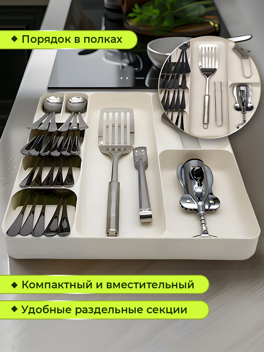 | Комплектация | Органайзер для столовых приборов в ящик - 1 шт. |
