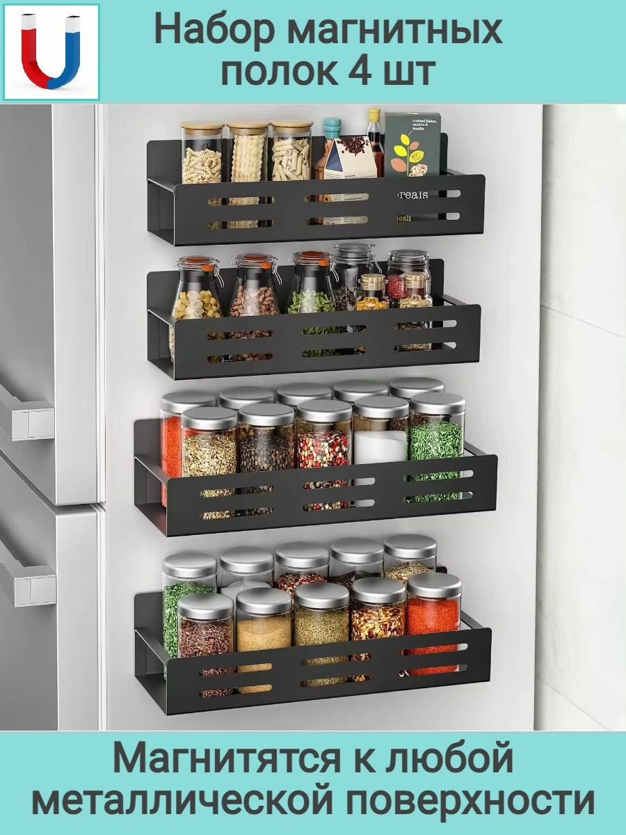 Магнитная полка на холодильник черная / Набор 4 шт. полки на магнитах информация: