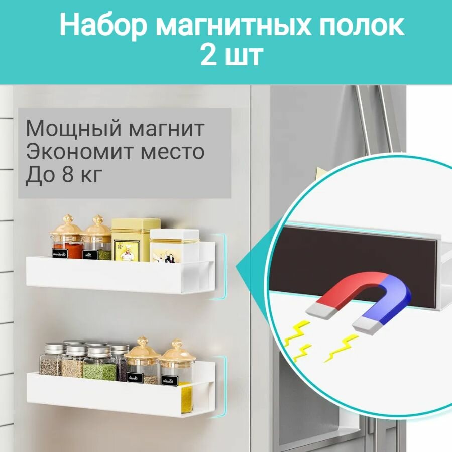 10 цен на Магнитная полка на холодильник белая / Набор 2 шт. полки на магнитах