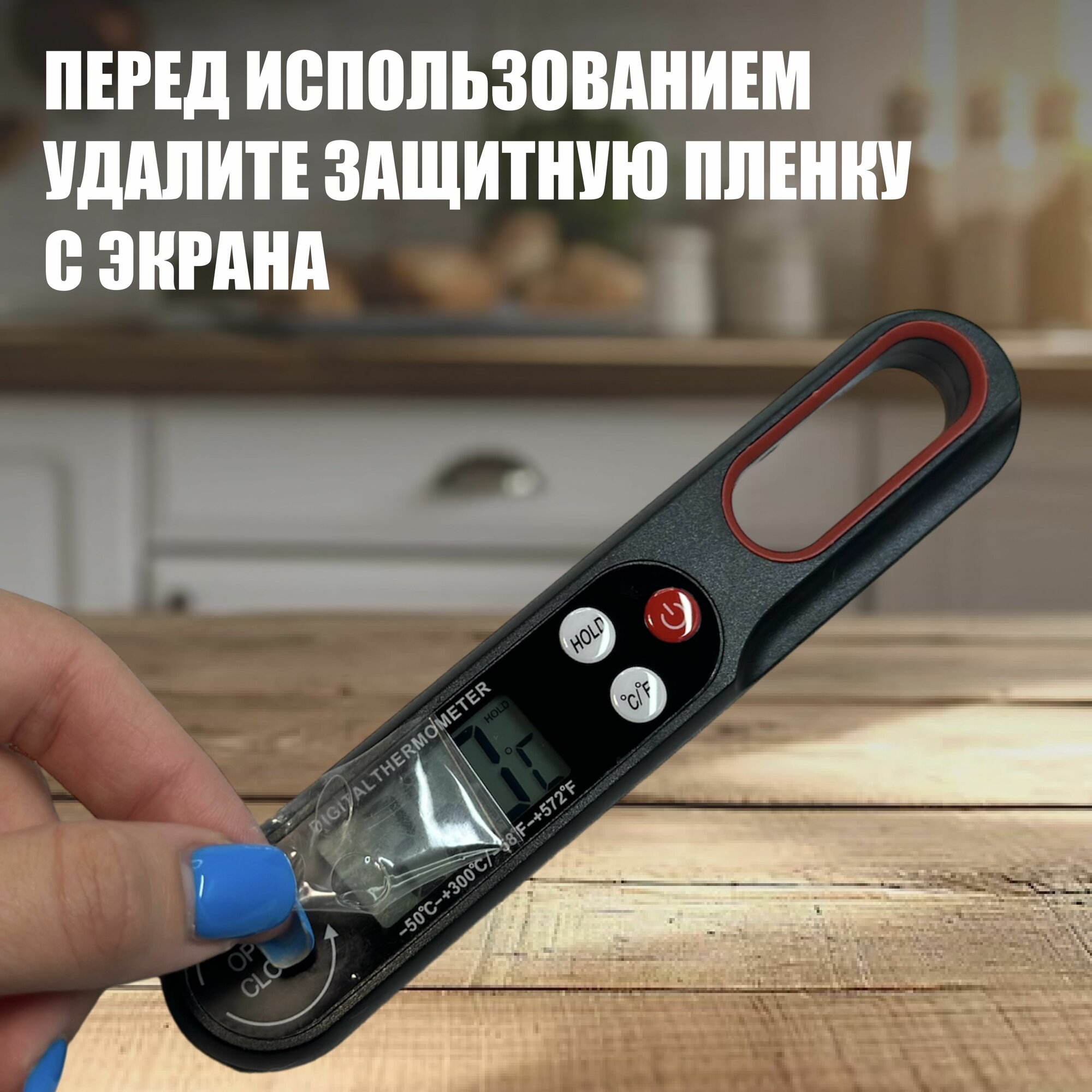 Кулинарный термометр электронный со щупом из нержавеющей стали, термометр для еды, мяса, вина, провод 1 метр / таймер кухонный