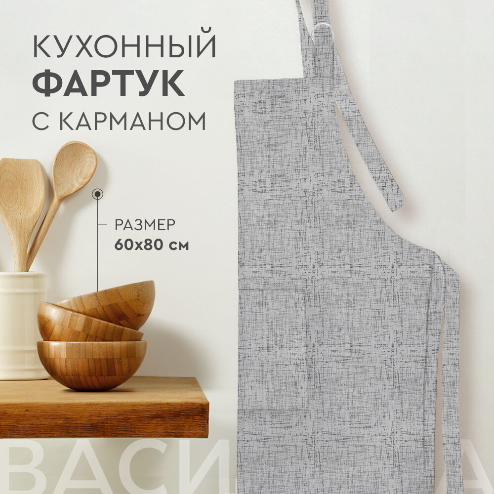 10 цен на Фартук кухонный Василиса 60х80 см, с карманом, Рогожка, Серый, Текстура