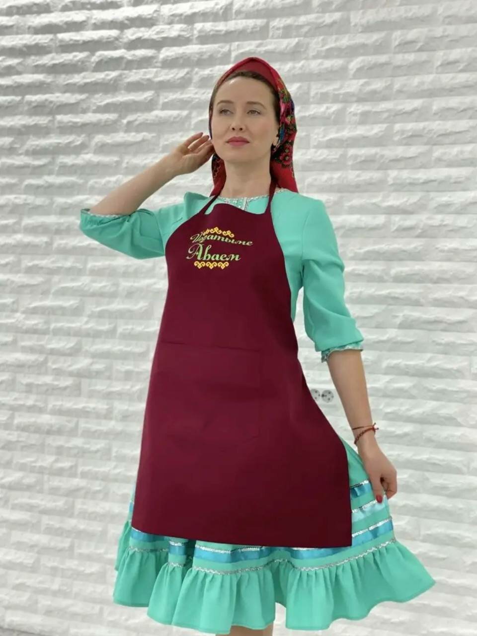 Фартук кухонный с татарской вышивкой подарок для мамы и бабушки, бордо 1 200 ₽