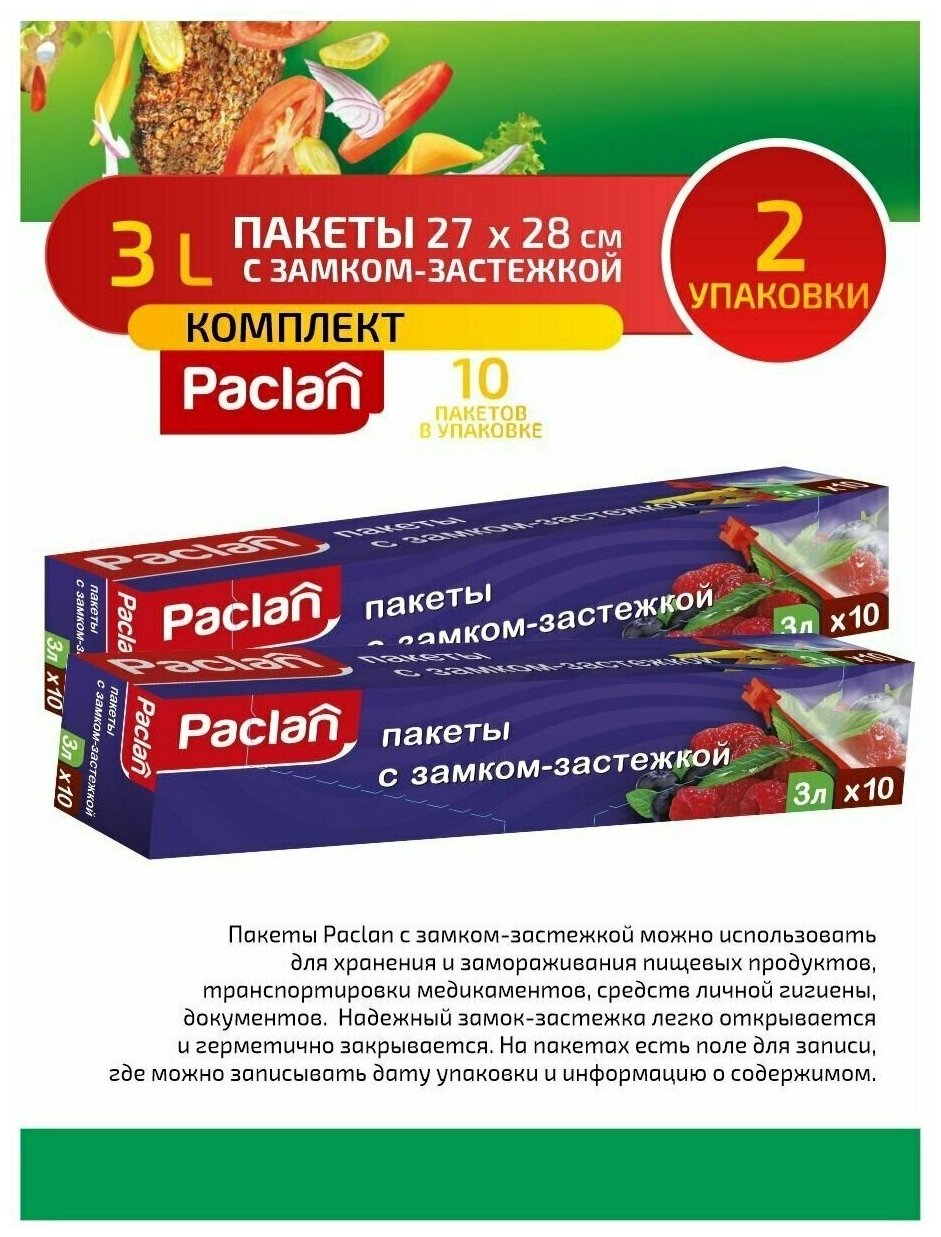 Комплект Paclan Пакеты с замком-застежкой 27 х 28 см. 3 л. 10 шт/упак. х 2 упак.
