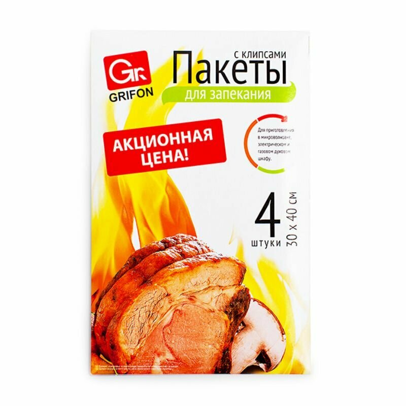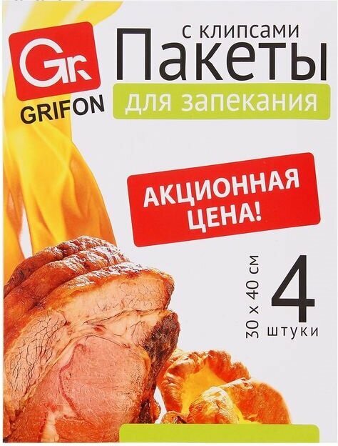 10 цен на Пакет.для запек.Grifon 30*40см 4шт 111-211 с клипсами