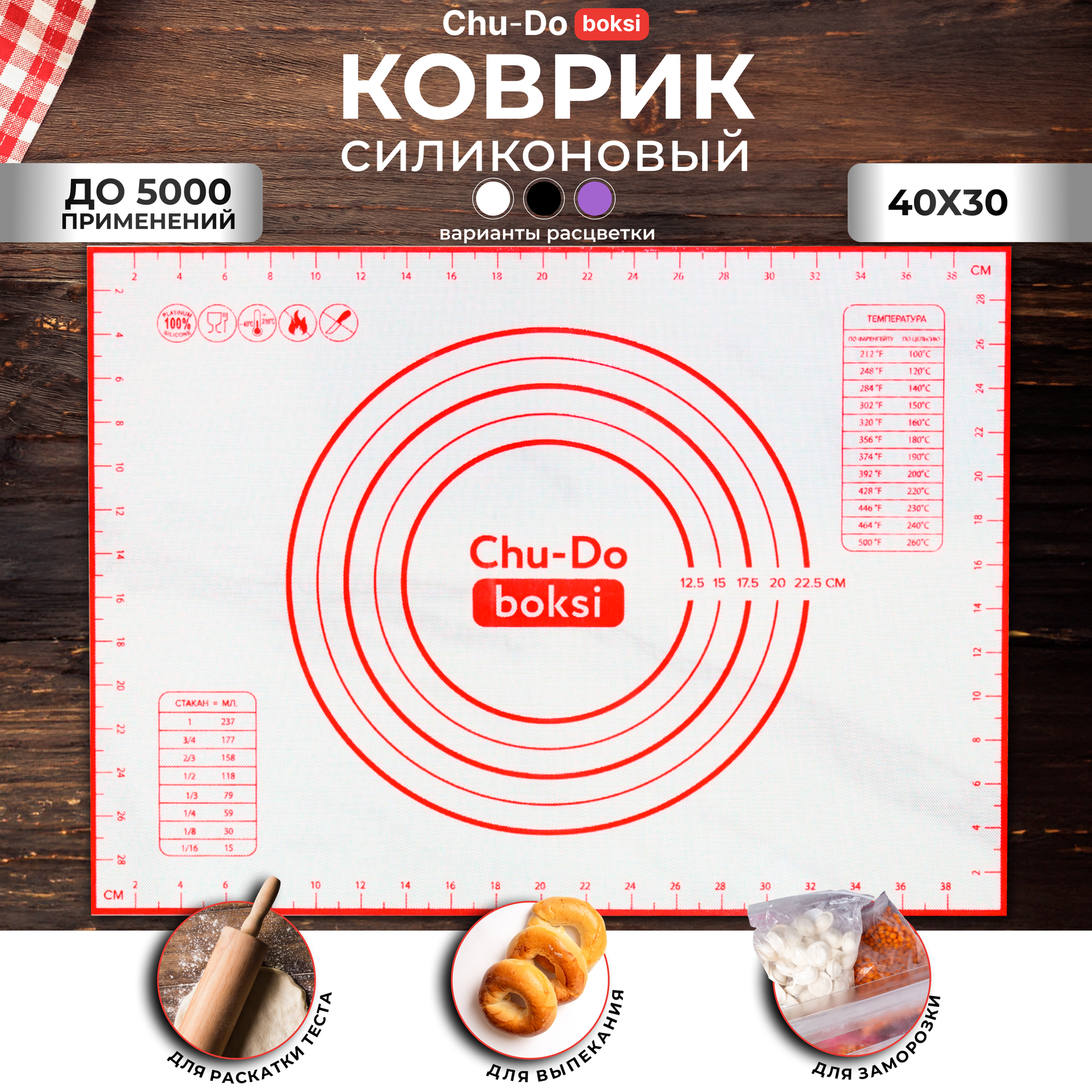 Силиконовый коврик для выпечки и раскатки теста 40x30, антипригарный коврик для выпечки многоразовый Chu-Do boksi информация: