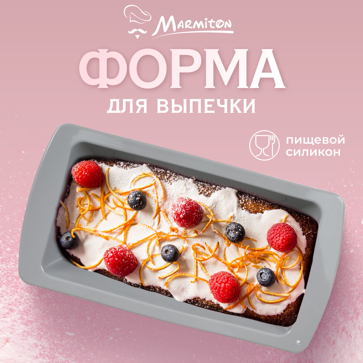 Форма силиконовая для выпечки/запекания/торта/шоколада/кексов/бисквита, прямоугольная, 24,5*13,5*5 см "Marmiton" BASIC информация: