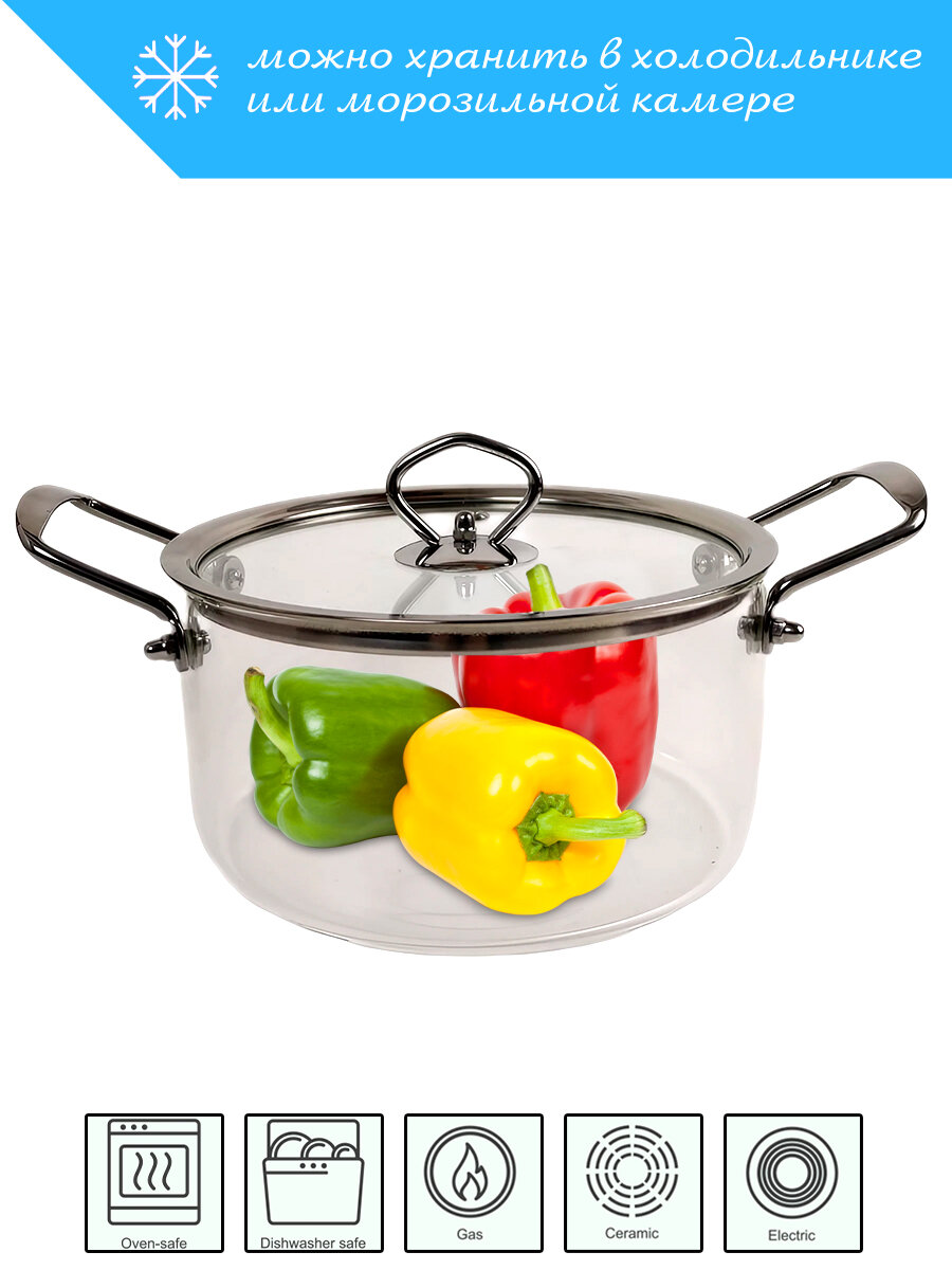 Кастрюля с крышкой LEONORD ITALIANO, объем 3.5л, боросиликатное стекло (105038) информация: