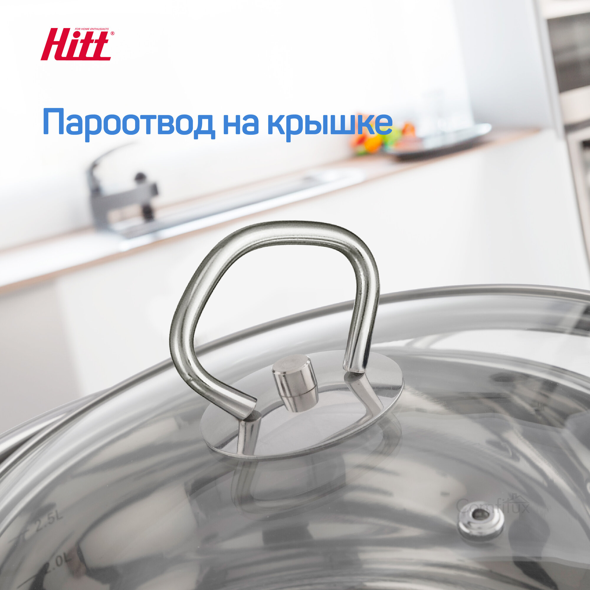 Кастрюля 3 литра Hitt, из нержавеющей стали, для индукционных плит, с крышкой дуршлаг